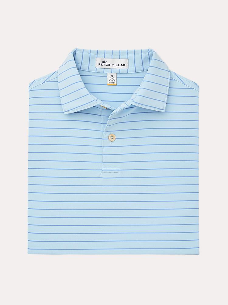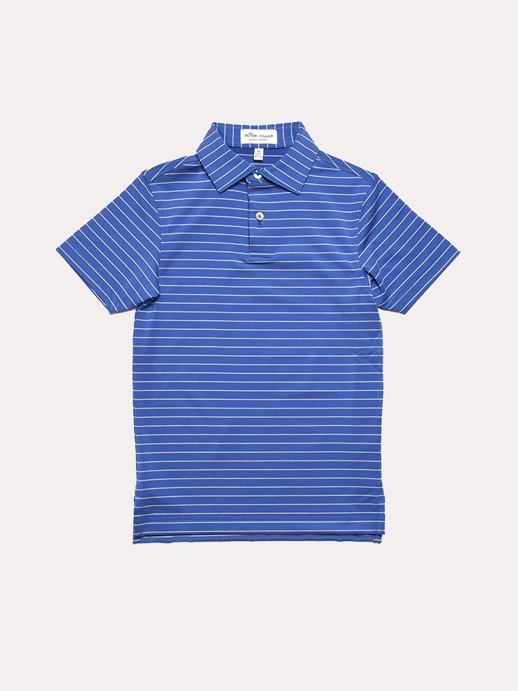 Add the Peter Millar Boys' Halifax Stripe Youth Stretch Jersey Polo to his wardrobe, a stretch polo shirt that will follow his movements and keep him comfortable during all his adventures.