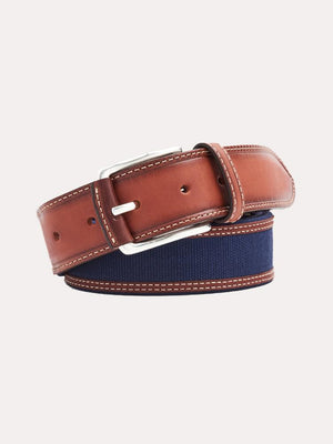 PETER MILLAR LEATHER TRIMMED COTTON CANVAS BELT