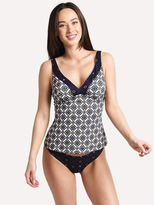 • Styled with Jets tankini style # J40114, Jets Bikini bottom Style # J3649 and Binge sandals style # KAIPS. Model is wearing size Small/Medium sarong, size 6 tankini and size 8 bikini bottom.